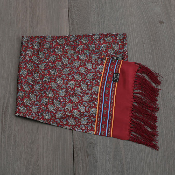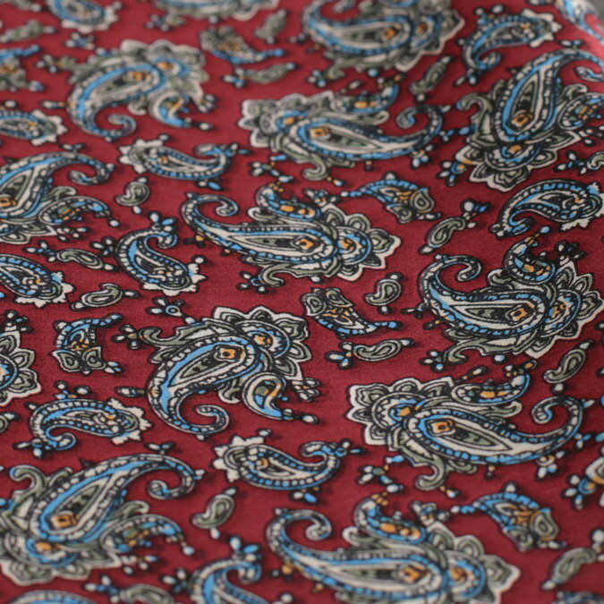 上品で鮮やかな色合いの バーガンディーカラーをベースに ペイズリー柄が全体にデザイン。