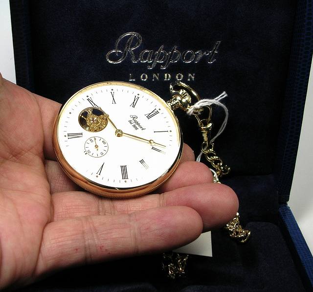 ラポート懐中時計 手巻き (イギリスRapport社製)バックスケルトン金メッキ PW86 [送料無料]