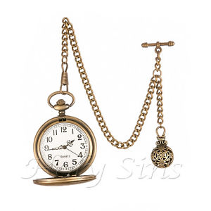 【送料無料】腕時計 ウォッチアンティークデザインブロンズクォーツポケットアルバートフォブチェーンウォッチ