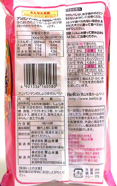 栗山 アンパンマンのしょうゆせんべい1枚×8袋【イージャパンモール】