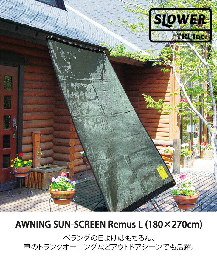 ▼メーカー希望小売価格はメーカーカタログに基づいて掲載しています ←クリックで拡大します●SLOWER スロウワー AWNING SUN-SCREEN Remus レムス L(180×270cm) 4箇所のハトメにロープやペグなどのパーツを通して固定するだけ、シーンを選ばずお好みの場所に設置できる。